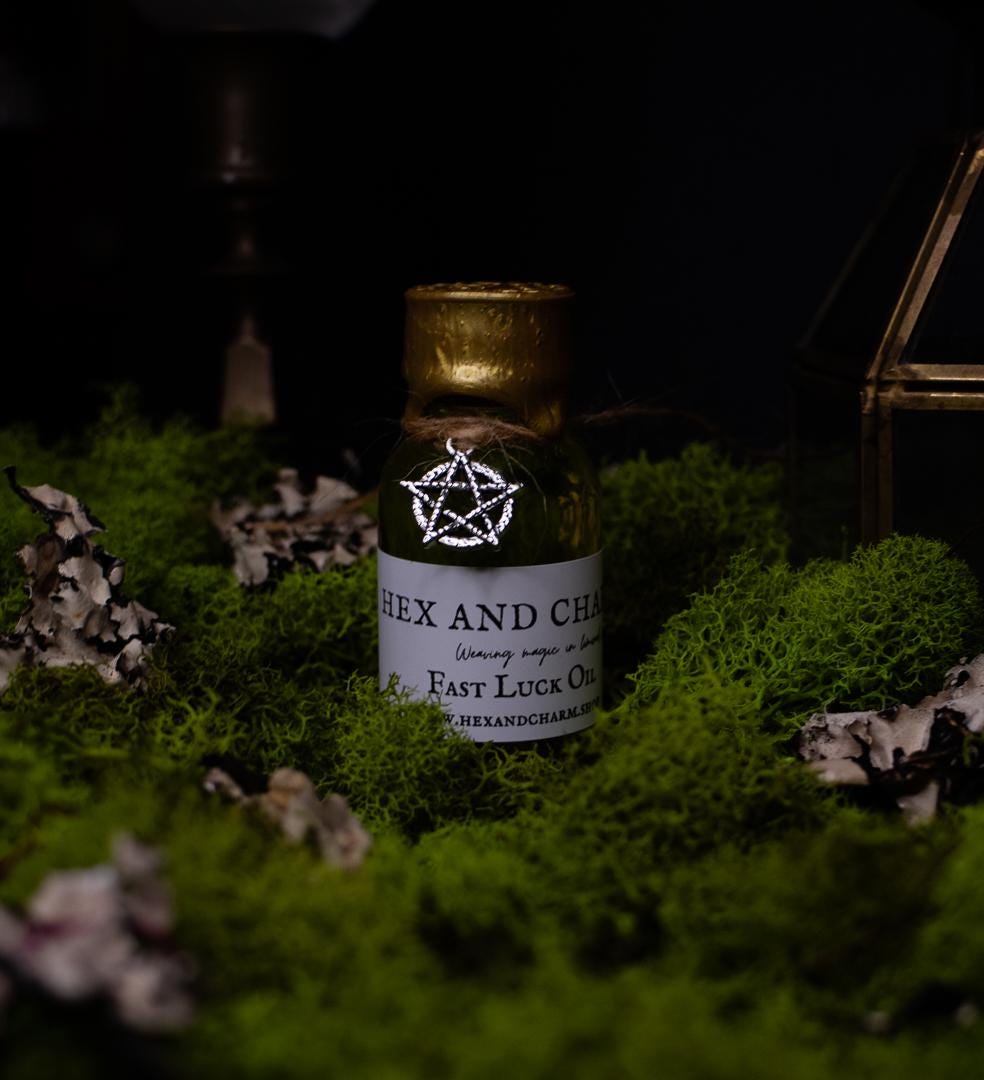 Fast Luck Oil is a handcrafted luck-drawing spell oil and success attraction oil created for witches, rootworkers, conjure practitioners, and spiritual workers seeking quick luck, favorable outcomes, abundance, and positive turns of fate in moments where timing and chance matter most.